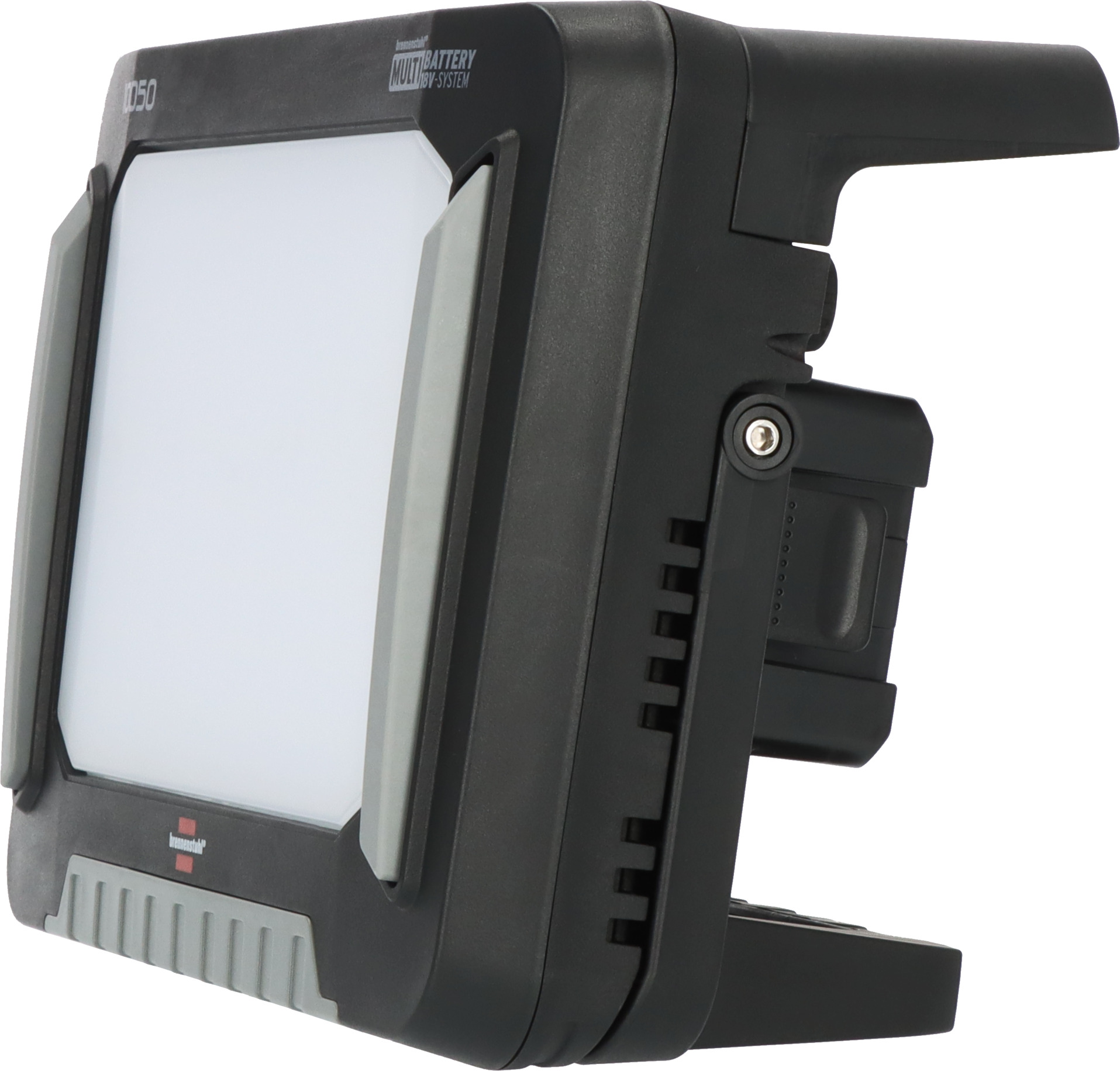 Der extrem robuste und leuchtstarke Multi Battery LED Akku Strahler mit 100 W Leistung ist dank brennenstuhl® Multi Battery 18V System kompatibel mit 44 verschiedenen 18V Akkus (verschiedene Ah Klassen) der sieben Powertool-Hersteller Bosch Professional, Dewalt, Festool, Flex, Makita, Metabo CAS, Milwaukee. Ganz egal also, welches Akku-System bereits im Einsatz ist, die Schnittstellen-Technologie ermöglicht maximale Flexibilität und es wird ermöglicht, auf das Akku-System seiner Wahl zurückzugreifen. Lediglich mit einem Handgriff kann der passende Adapter (nicht inklusive) an der Schnittstelle eingesetzt werden. LED Baustrahler mit 12500 lm bietet eine optimale Lichtverteilung durch eine großflächigen Ausleuchtung bei blendfreiem und schlagfestem Arbeitslicht. Der schlagfeste Baustrahler dient zur flexiblen und beliebigen Nutzung, egal ob stehend, flachliegend für eine großflächige Ausleuchtung oder zur Montage auf Stativ. Der schlagfeste Arbeitsstrahler mit enormer Leuchtkraft, kann dank Hybridtechnik per Akku- und Netzbetrieb gesteuert werden. Auch bei einem möglichen Stromausfall sorgt der LED Strahler für Sicherheit, indem er automatisch von Netz- auf den Akkubetrieb umschaltet. Weiterhin verfügt er über eine Akku-Zustandsanzeige für die Restenergie des eingesetzten Akkus (die Akkus sind extern zu laden) und über ein Schutzsystem für Power-Tool Akkus. Dies schützt die eingesetzten Akkus vor Tiefenentladung und Überhitzung (hervorgerufen durch hohe Lastströme). Zudem überzeugt der Multi Battery LED Strahler mit Hybridtechnik durch folgende Eigenschaften: