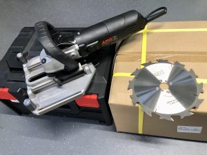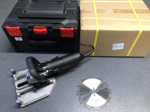 Transportkoffer mit Schaumstoffeinlage, Fensterfugenfräse mit Anschlusskabel 7.5 m, Sägeblatt Z12 (Ø 180 mm), 50 Gesni Lamello Tanga Blätter Ø 180 mm / Z-12