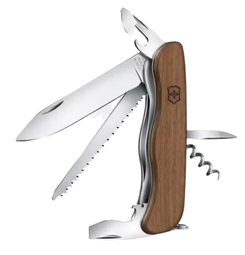 Obwohl der Wald sein natürlicher Lebensraum ist, meistert das Forester Wood mit der gleichen Leichtigkeit auch alle Anforderungen des Grossstadt-Dschungels. Die 10 integrierten Funktionen beinhalten einen Schraubendreher, eine grosse Feststellklinge und eine Holzsäge. Die Schalen dieses grossen Taschenmessers bestehen aus wunderschönem Nussbaumholz und betonen seine Nähe zur Natur.